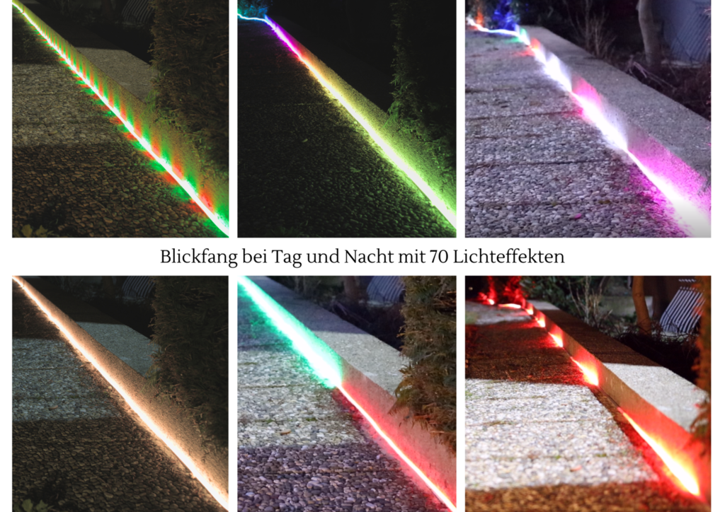 Ein lebendiger, ständig wechselnder Farbverlauf fließt auf dem Lichtschlauch.