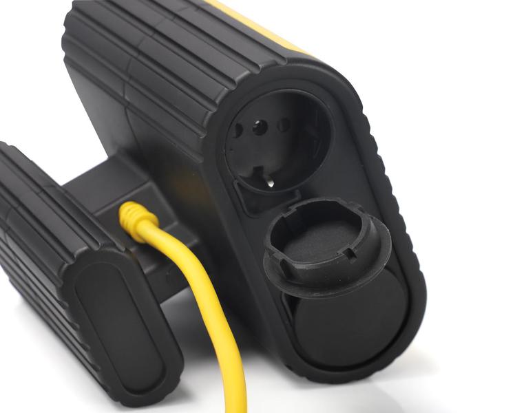Die Arbeitsleuchte SPACE CRAFT ist eine sehr helle Arbeitsleuchte, kombiniert mit zwei Netzsteckern. Die kompakte und robuste Leuchte wurde in München entworfen und nach ihrem raumschiffartigen Aussehen benannt. Die Arbeitsleuchte SPACE CRAFT ist sehr praktisch für Personen, die Elektrowerkzeuge verwenden müssen. Dank der Netzstecker auf der Arbeitsleuchte nutzen Sie Ihre Elektrowerkzeuge mit Plug and Play – ohne viele, unordentliche Stromkabel. SPACE CRAFT ist kompakt und leicht zu tragen. Sie ist klein, aber schwer genug, und ihr robustes industrielles Aussehen ist so zuverlässig wie ihre Qualität.