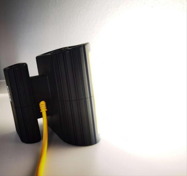 Die Arbeitsleuchte SPACE CRAFT hat eine hohe Helligkeit von 5000 Lumen, sodass Ihnen bei der Arbeit kein Detail entgeht. Das einzigartige Außendesign gibt dieser Leuchte mehrere Beleuchtungswinkel. Wenn Sie sie auf den Boden stellen, drehen Sie sie einfach um, sodass die verschiedenen Seiten den Boden berühren und Sie erhalten verschiedene Beleuchtungswinkel von unten nach oben. Ihre einzigartige Kurve ermöglicht es Ihnen, sie an einer Wand zu befestigen. Dann haben Sie Beleuchtung von oben nach unten, und die mitgelieferten Haken oder Nylonbänder ermöglichen es Ihnen, sie aufzuhängen.